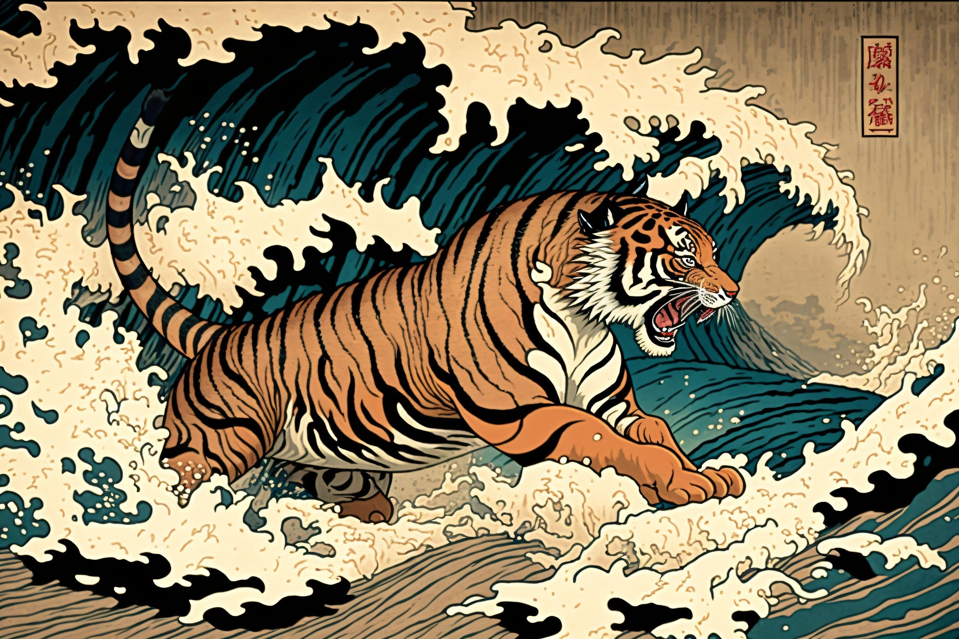 Bengal Tiger Japanese Style - Canvas, Metal, Acrylic, Framed, or Giclee Print