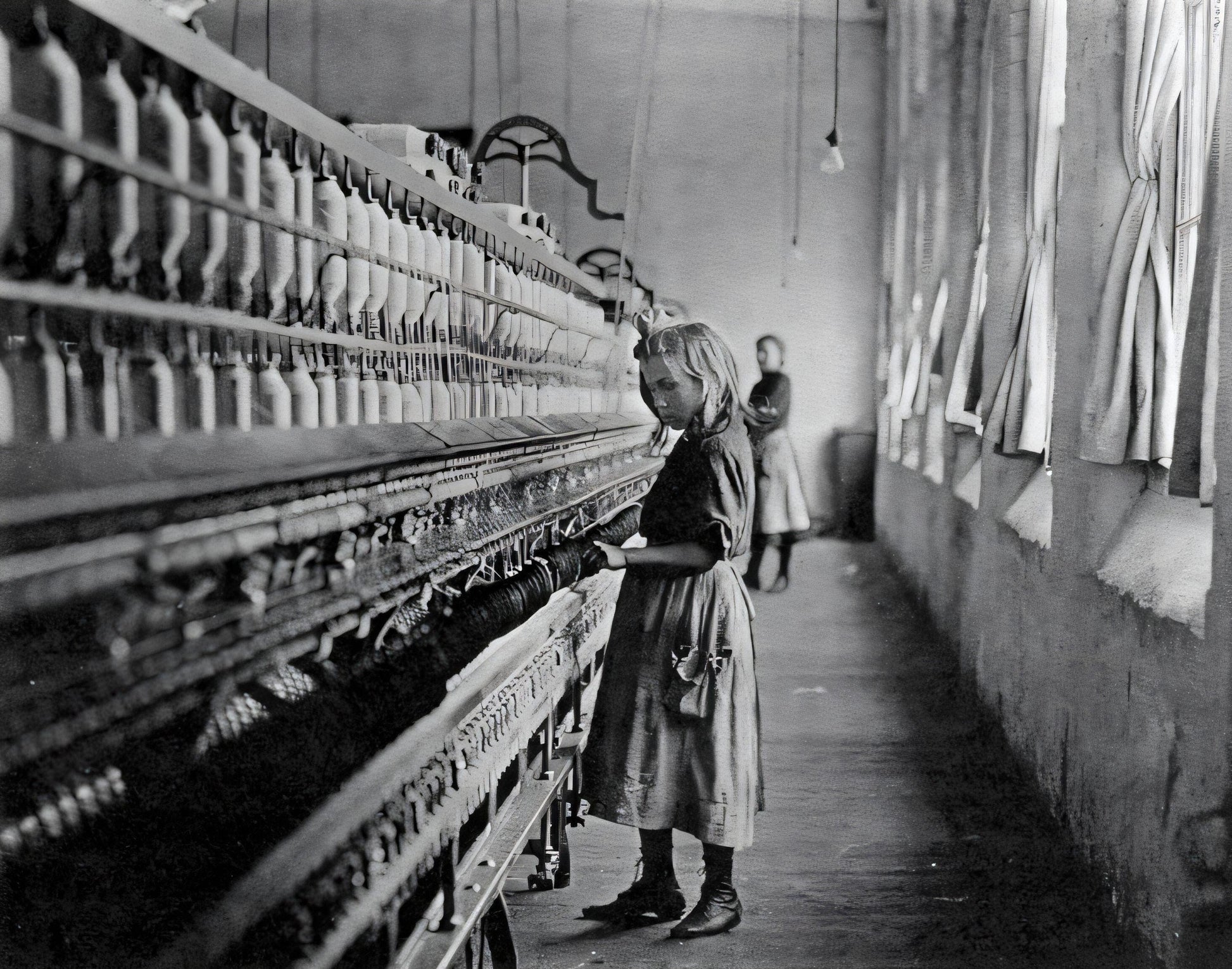 Description: Lewis Hine, a prominent photographer known for his captivating portraits of immigrant families and steelworkers, was hired by the National Child Labor Committee in 1906 to document the grim realities of child labor. In a South Carolina cotton mill, Hine discovered Sadie Pfeifer, a young worker who stood at a mere 48 inches tall, and captured her image next to the hazardous machinery she faced each day. Despite the bright lighting, Sadie's small figure is almost lost amid the towering rows of spools before her, a stark reminder of the repetitive and robotic nature of factory labor. Hine's images were initially published in periodicals, posters, and booths at anti-child labor conventions, playing a crucial role in raising awareness about the issue. Thanks in part to Hine's photographs, 35 states passed laws in 1914 prohibiting the employment of children under 14 and mandating an eight-hour workday for those under 16, marking a significant turning point in the fight against child labor. These powerful photographs are a testament to the transformative power of photography and its ability to inspire social change.